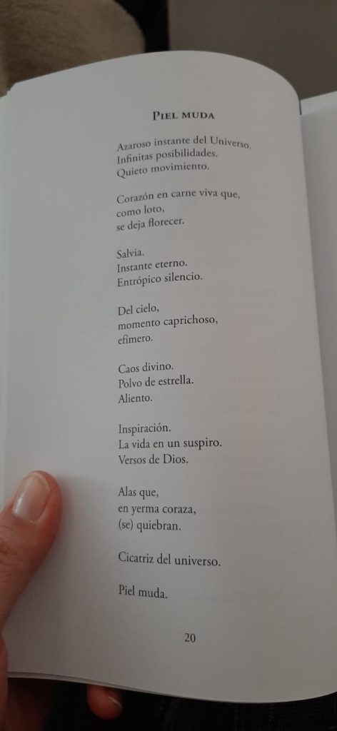 Aunque hace ya muchos años que conozco a Raquel, precioso nombre por cierto, siempre me sorprende. Son muchas las facetas y los personajes que ha transitado, tanto profesional como literariamente. Sea esta reseña un aplauso para su carrera como poeta que se consolida con esta Piel muda, su segundo poemario.
